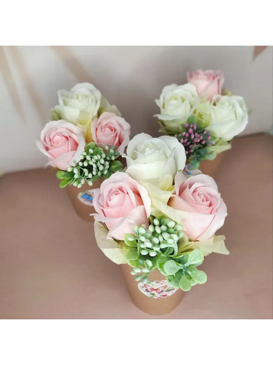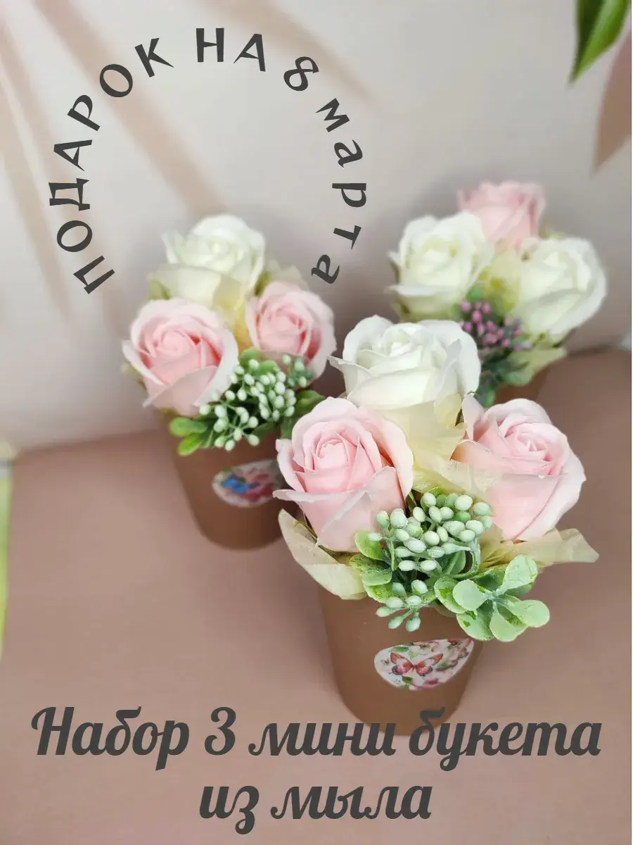 Этот очаровательный набор из трех букетов из мыльных роз станет прекрасным подарком на 8 марта. Каждый букет состоит из трех нежных мыльных роз, дополненных изысканным декором из зелени и ягод. Розы, созданные из мыльного раствора, полностью растворяются в воде, оставляя приятный аромат. Такой оригинальный и практичный подарок точно порадует ваших близких и создаст праздничную атмосферу.