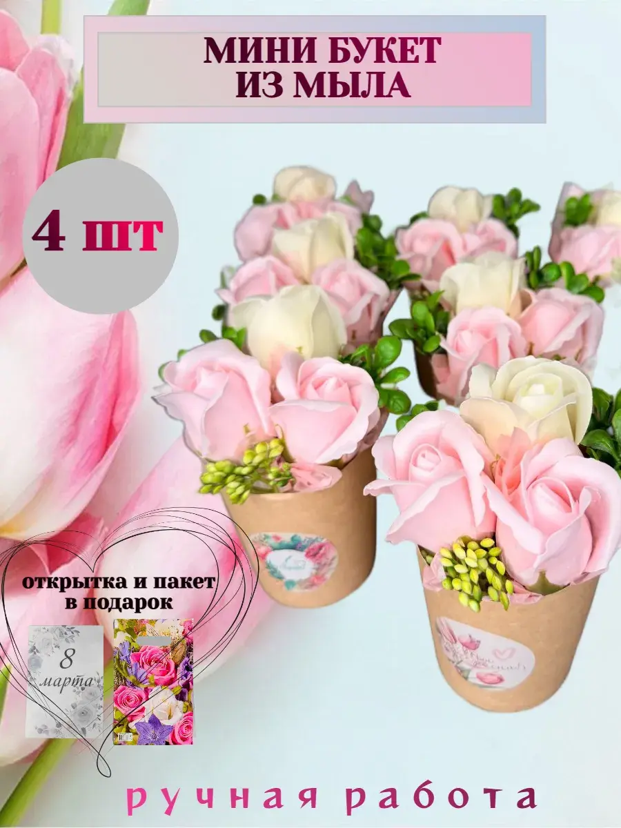 Подарите себе и своим близким кусочек утончённой роскоши с букетами из мыла Flora Aurora. Этот набор из 4 изысканных мыльных цветов станет не только украшением ванной комнаты, но и источником приятных ароматов и нежной заботы о коже. Мыло Flora Aurora бережно очищает, увлажняет и питает кожу, оставляя её мягкой и бархатистой. Его уникальная формула, обогащенная натуральными компонентами, не содержит SLS, что делает его идеальным для чувствительной кожи. Букеты из мыла Flora Aurora - это прекрасный подарок для любого случая.