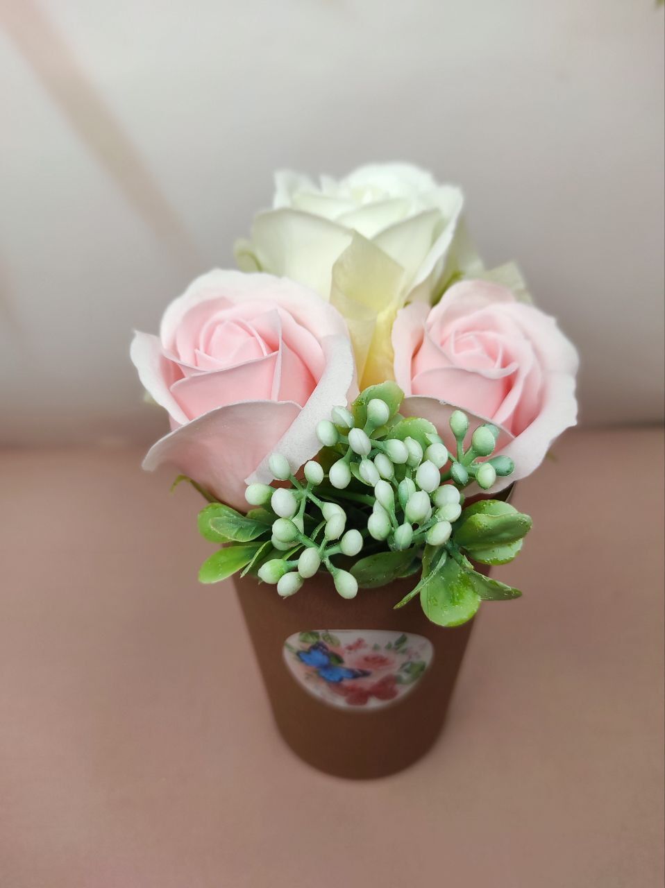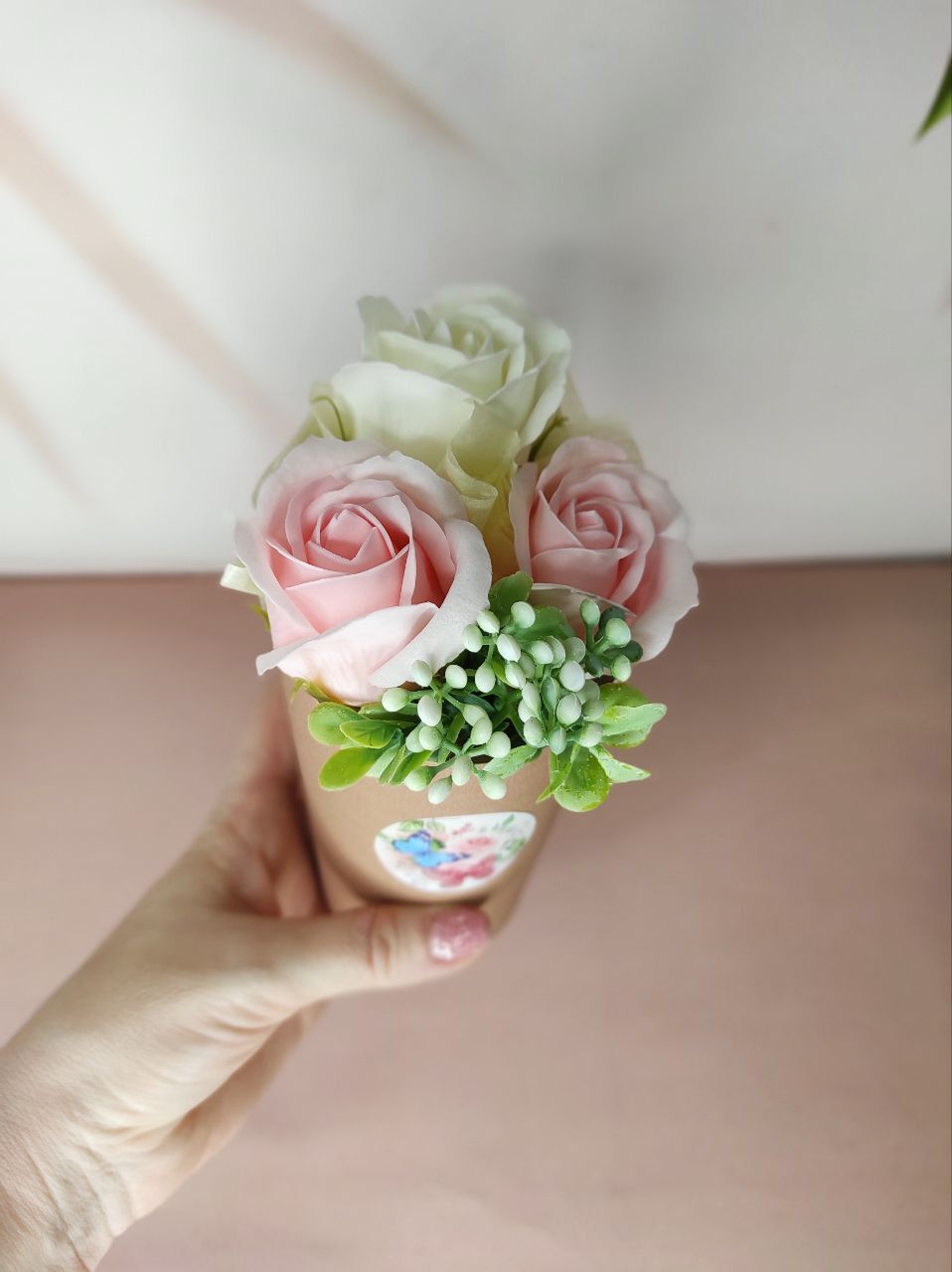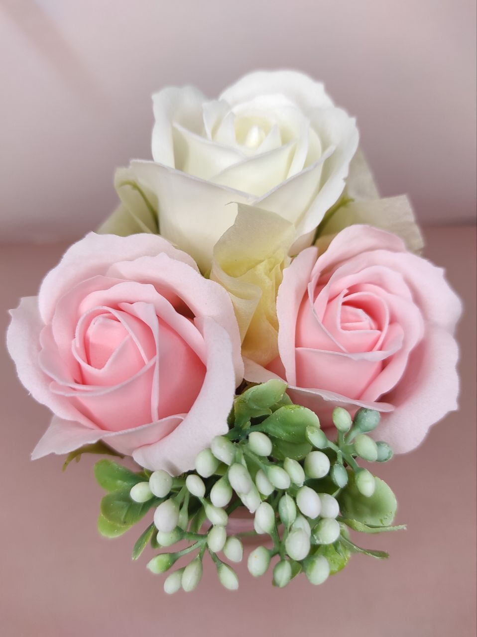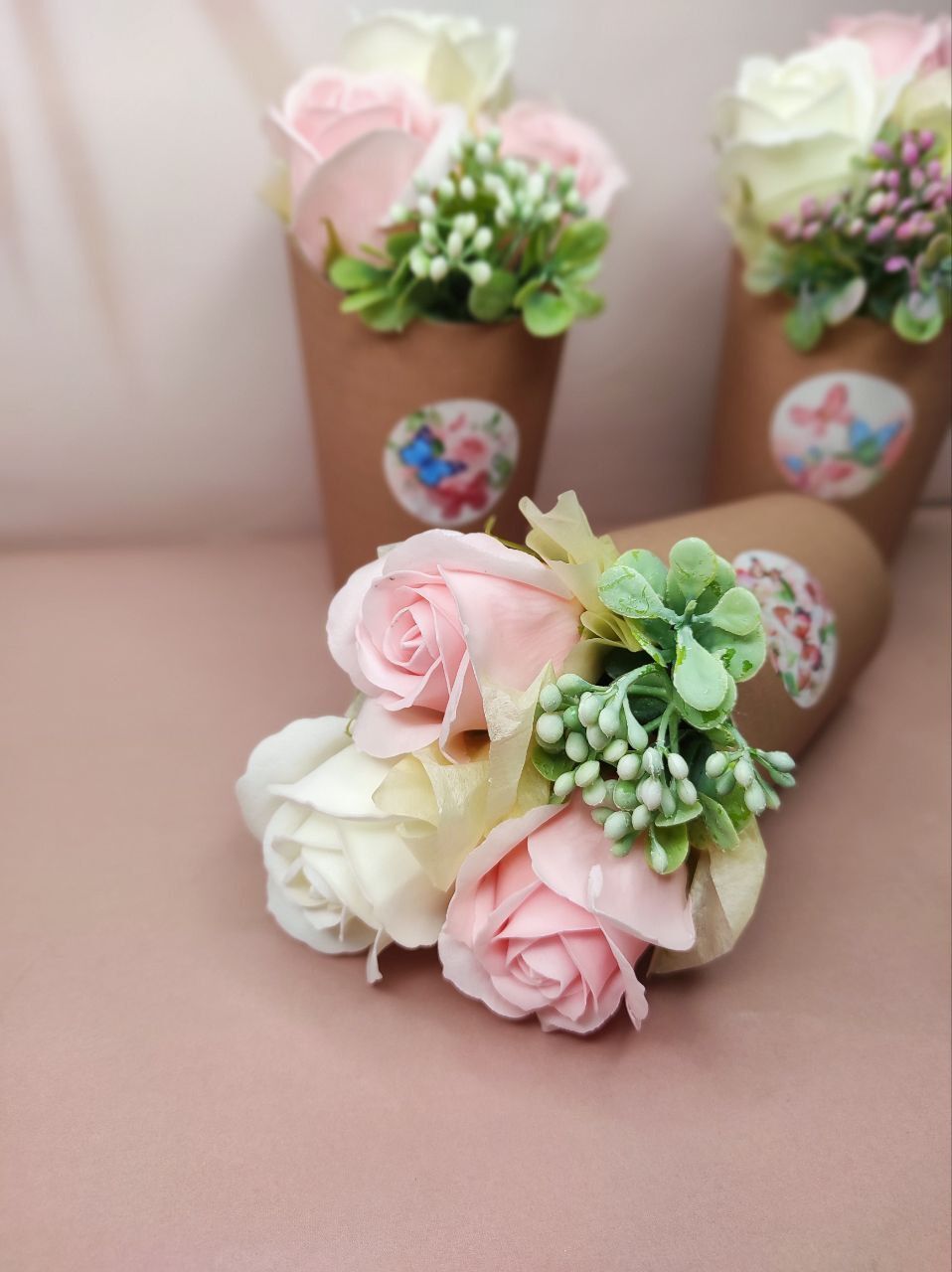 Мини букет из 3 мыльных роз - это прекрасный универсальный и доступный вариант подарка для коллег на Международный женский день. Три ярких и стильных цветка, выполненные из высококачественного мыльного раствора, станут замечательным символом внимания и заботы, а также проявлением искреннего уважения и почтения к коллегам. Розы в букете выполнены с максимальной детализацией, что делает их практически неотличимыми от настоящих а лепестки этих цветов имеют приятную, нежную текстуру, которую хочется трогать снова и снова.