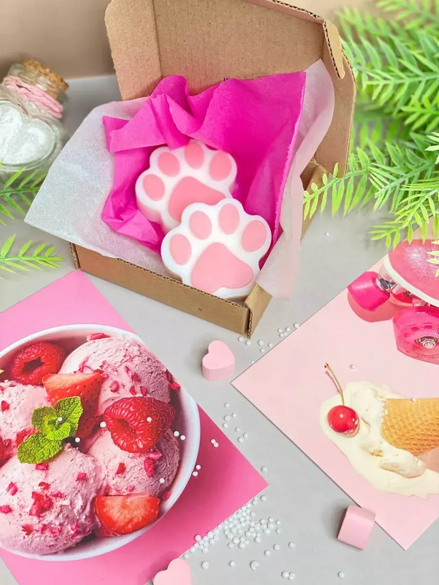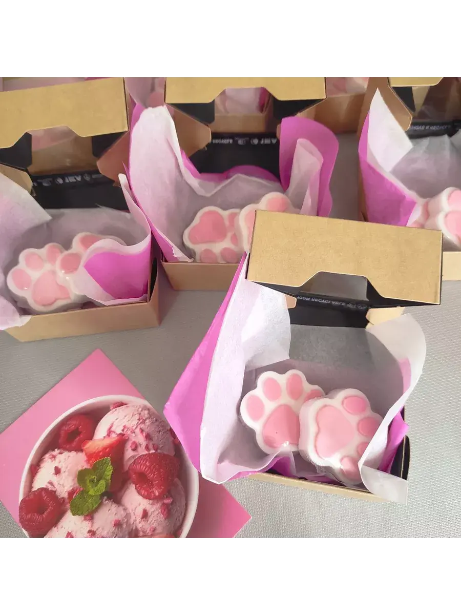 Мыло “Кошачьи лапки” часто заказывают в качестве подарка на день рождения, презента для гостей на свадьбе или просто для сюрприза друзьям или подругам. Лапки отправляются в подарочной упаковке в виде картонной коробки с наполнением из бумаги тишью с открыткой и стикерами в виде интересных кошек.
