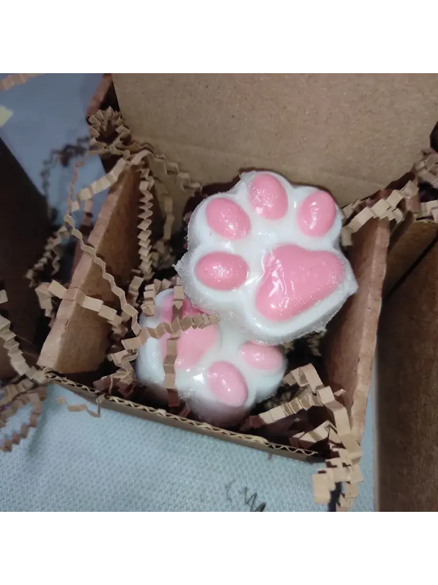 Мыло “Кошачьи лапки” часто заказывают в качестве подарка на день рождения, презента для гостей на свадьбе или просто для сюрприза друзьям или подругам. Лапки отправляются в подарочной упаковке в виде картонной коробки с наполнением из бумаги и стикерами в виде интересных кошек.