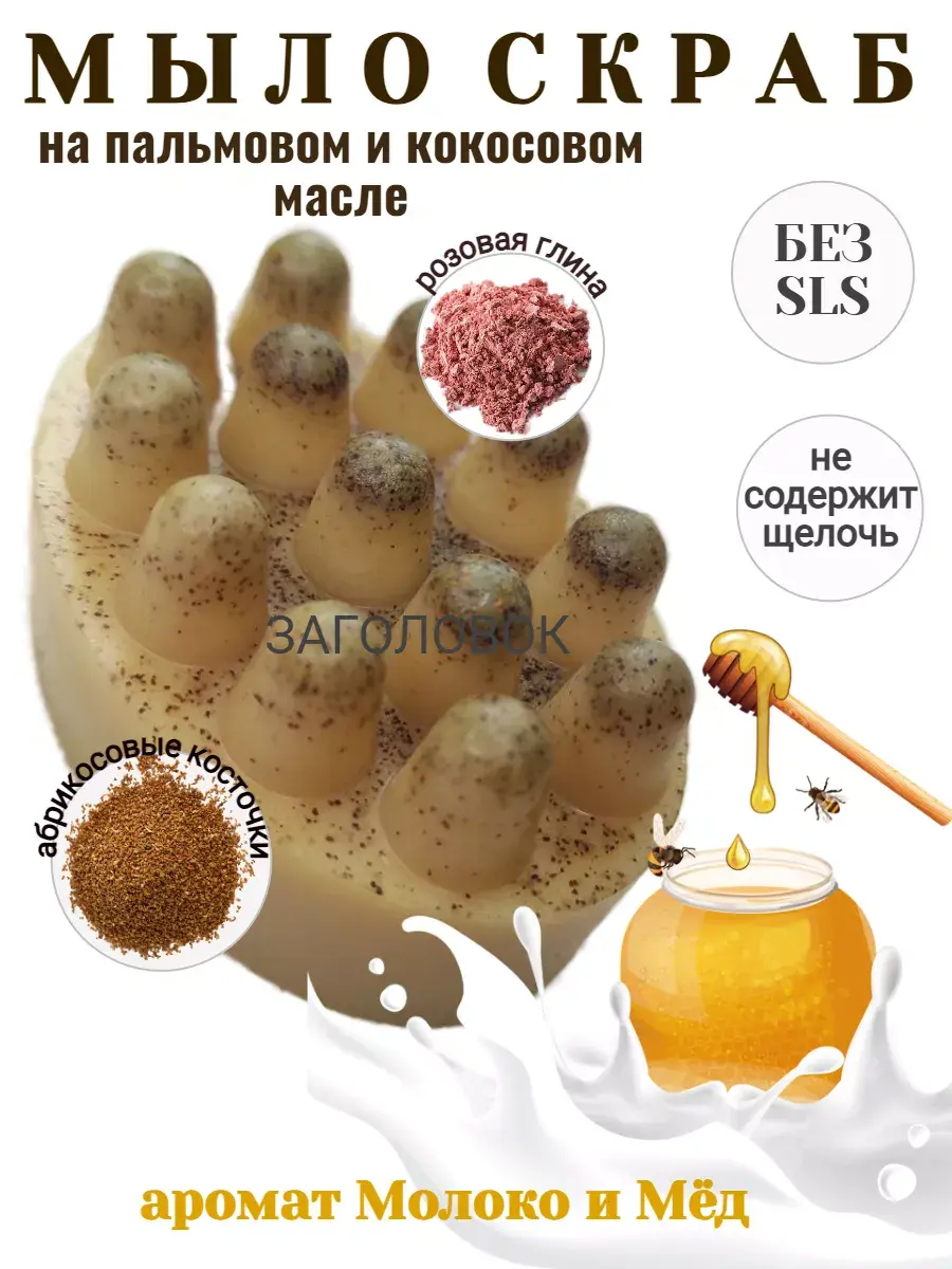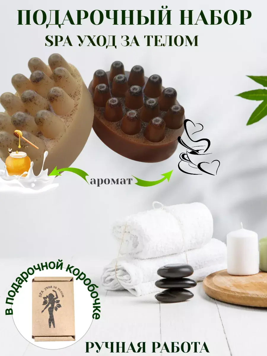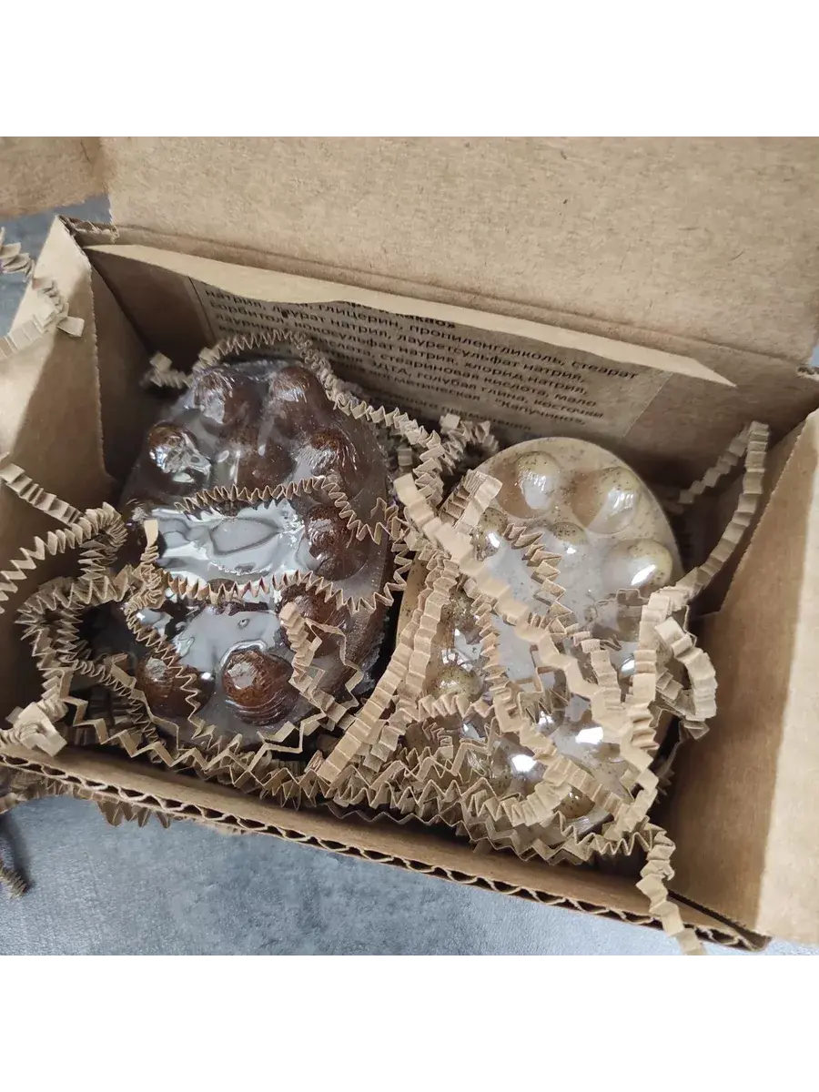 В набор входит 2 мыла-скраба с ароматами молоко и мёд и кофе капучино.